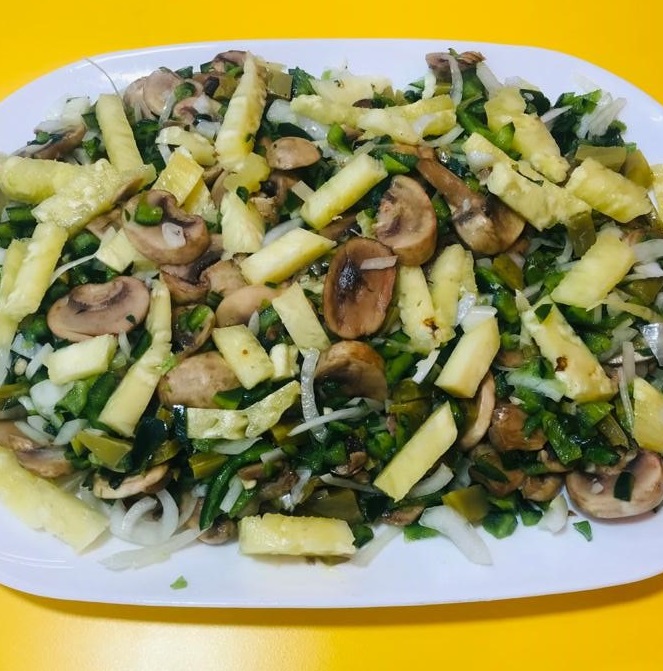 • Champiñones, Nopales, Piña, Chile Poblano y Cebolla.